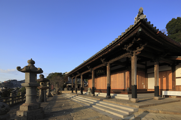 その後、数百年の時を経て平成17年より5年の歳月をかけ行われたのが大規模な本堂の改修です。建物全体を解体し行われた修理では、調査検証も実施され長崎清水寺の本堂が非常に特徴のある建物であることが確認されました。中でも、周囲を開放する本堂の形や、仏堂を彩る絵様のモダンなデザインなど、伝統的な日本様式に最先端の中国様式の多くが織り交ぜられていることは他の仏堂には見られないものです。長崎清水寺の本堂をご覧いただき、長崎と中国をつなぐ悠久の歴史に思いを馳せてみてはいかがでしょうか。